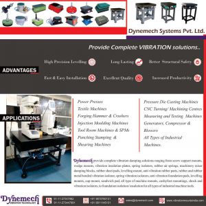 Dynemech Systems will be showcasing their entire range of Anti-Vibration Pads and Vibration Isolators India Machine tools Show 2019 from14 - 17 June 2019 at Pragati Maidan, New Delhi.. Read More »